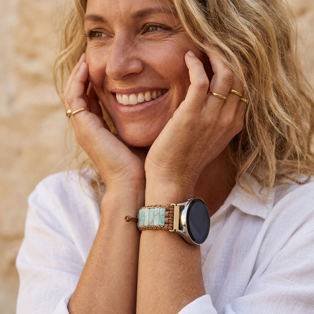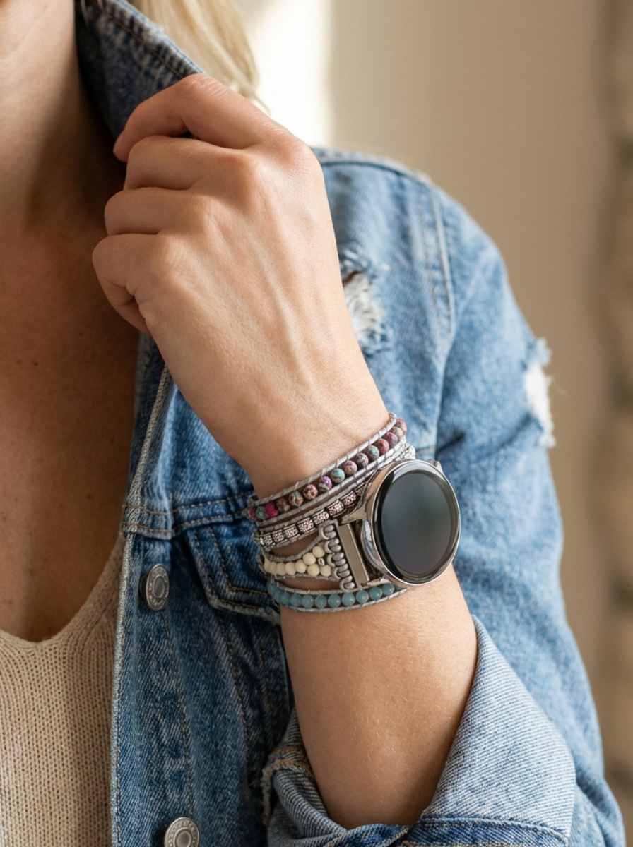 Our unique designs give your Samsung Watch a colorful energy boost. No more plastic gadgets—just stylish jewelry that feels comfortable on the skin and reflects your intentions and personal style.